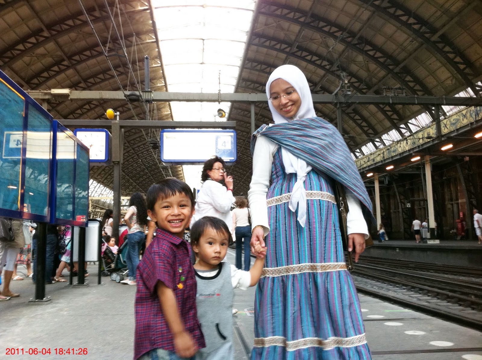 Bangun seawal 6pagi dan prepared nasi lemak for breakfast, while my 3heroes masih enak dibuai mimpi. Mama pun mengantuk amat lagi pagi tu tapi paksa jugak diri untuk bangun sebab nak masak nasi, perut sekarang ni dah tak tahan kalau takat makan ringan2, roti2 ni memang tak jalan, sat ja dah lapar balik. Untuk elakkan kelaparan, better makan berat terus. Siap je masak the kids pun bangun so suap depa makan, then mama pulak makan. Mandikan dan siapkan depa, mama pun bersiap, rehat2 depan tv sambil tunggu ayah depa pulak bersiap. Pukul 8 lebih keluar rumah tapi melilau pusing cari train station sampai sesat2, hahaha, hampeh punya GPS, biol sungguh, entah ke mana2 entah dia tala, last2 myLove berjaya jugak cari station tu dengan samar2 petunjuk GPS. Pukul 9 lebih baru berjaya naik train, turun kat Utrecht station dan tukar train untuk ke Amsterdam. Tiba kat Central station(Amsterdam) dah pun pukul 11 lebih...